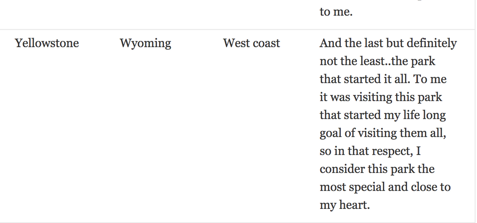Since I wrote this blog, I have visited a few more national parks. Here's my 2-3 lines memory notes on those: